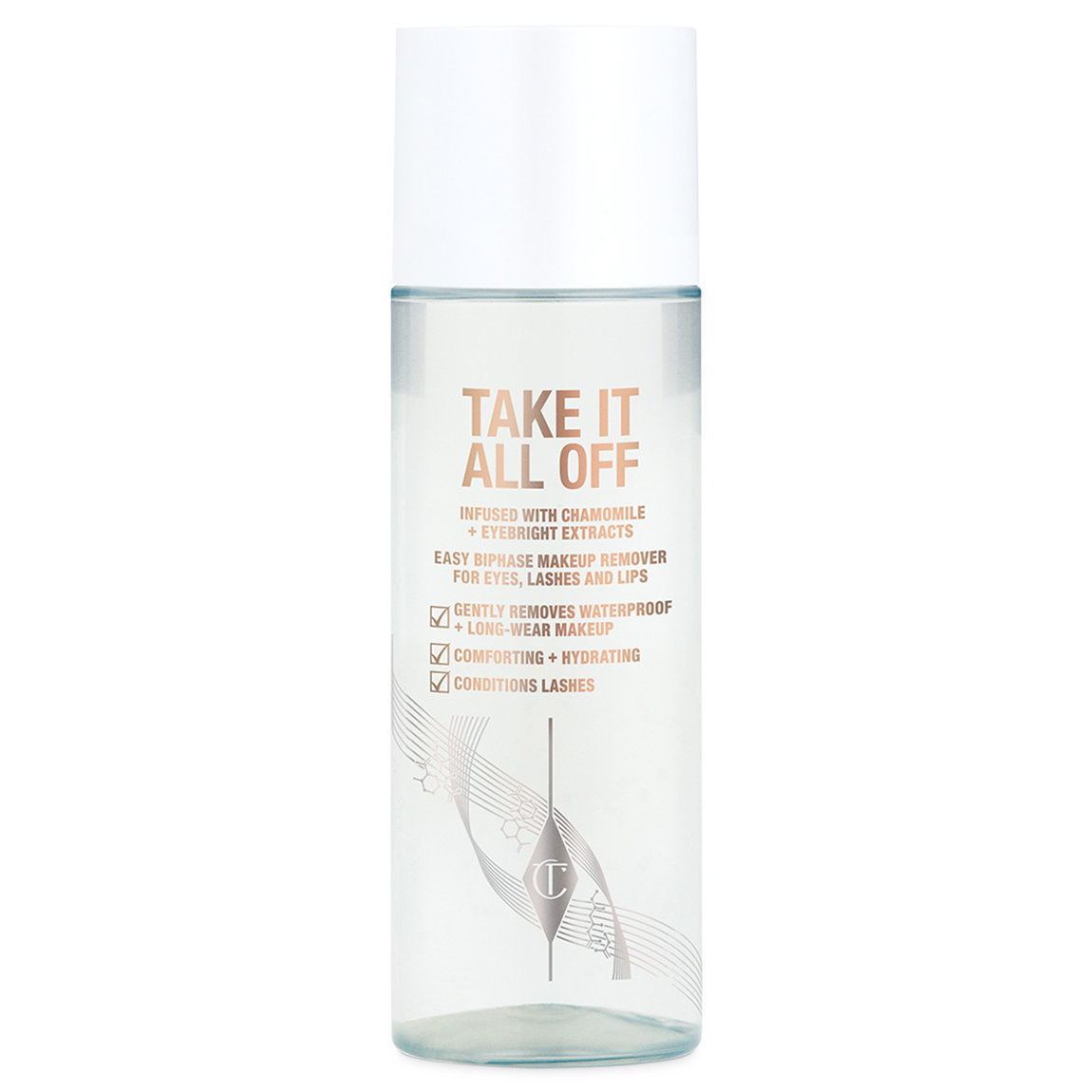 Средство Take It All Off легко справляется с первым этапом вашего вечернего ритуала умывания, удаляя все следы стойкого макияжа и сохраняя кожу увлажненной. Успокаивающие экстракты очанки и ромашки обеспечивают комфорт и уход для чувствительной кожи, а также питают ресницы и губы. Забудьте о воспаленных, покрасневших глазах после умывания с особенно стойкой водостойкой тушью — эта двухфазная формула объединяет масло и воду в «взболтанном» средстве, обеспечивая непревзойденное очищение от стойких средств для губ и глаз.