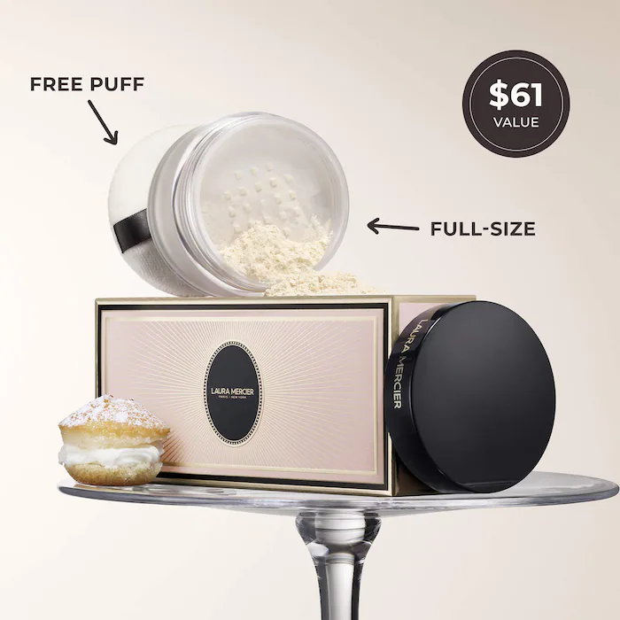 Что еще нужно знать: Отмеченная наградами фиксирующая пудра Laura Mercier в сочетании с пуховкой Velour Puff для легкого нанесения закрепит макияж до 16 часов и обеспечит контроль блеска в течение 24 часов. Легкая пудра впитывает излишки кожного сала, уменьшает блеск и мягко разглаживает мелкие морщинки и несовершенства, создавая безупречный матовый финиш без эффекта «фото-вспышки».